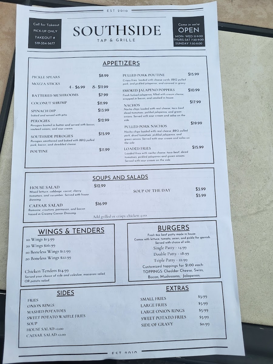 Welcome to Southside Tap & Grille, your new favorite dining spot in Chatham, Ontario. Located at 936 Charing Cross Rd, this vibrant eatery prides itself on offering a casual yet fulfilling experience for each patron that walks through its doors. With a menu that seamlessly blends hearty flavors and generous portions, it’s no wonder that locals and travelers alike have made it their go-to destination.